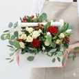 Корзина кустовых роз с эвкалиптом