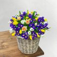 Корзина кустовых роз и ирисов
