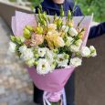 Букет эустом, тюльпанов и гипсофилы