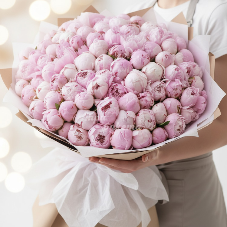 • Светло-розовые пионы Сара Бернар, 101 шт.