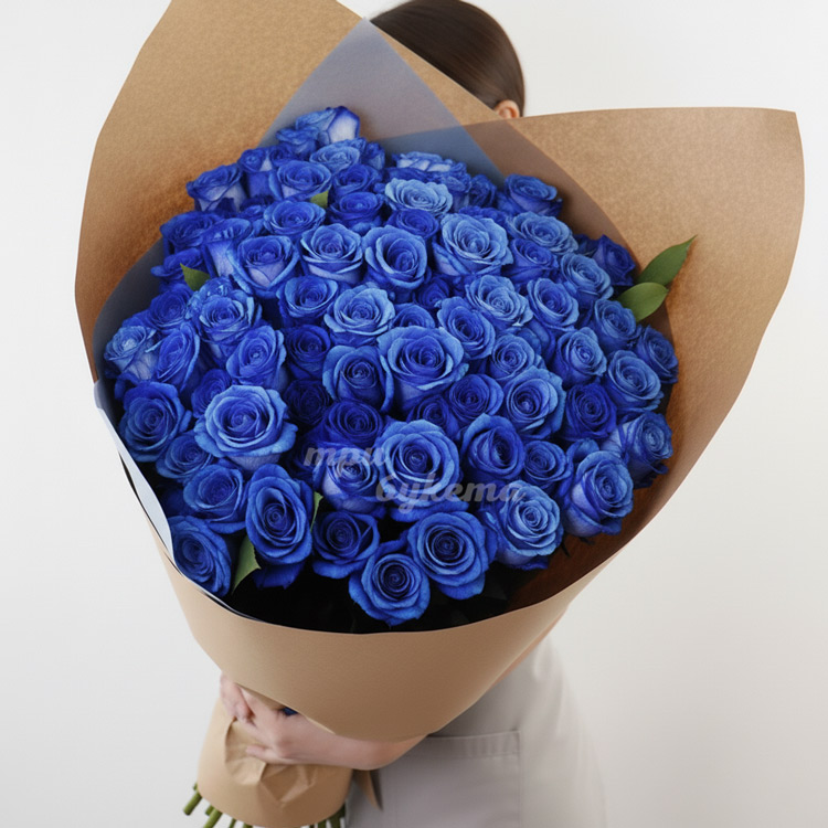 101 синяя роза в крафте 70 см
