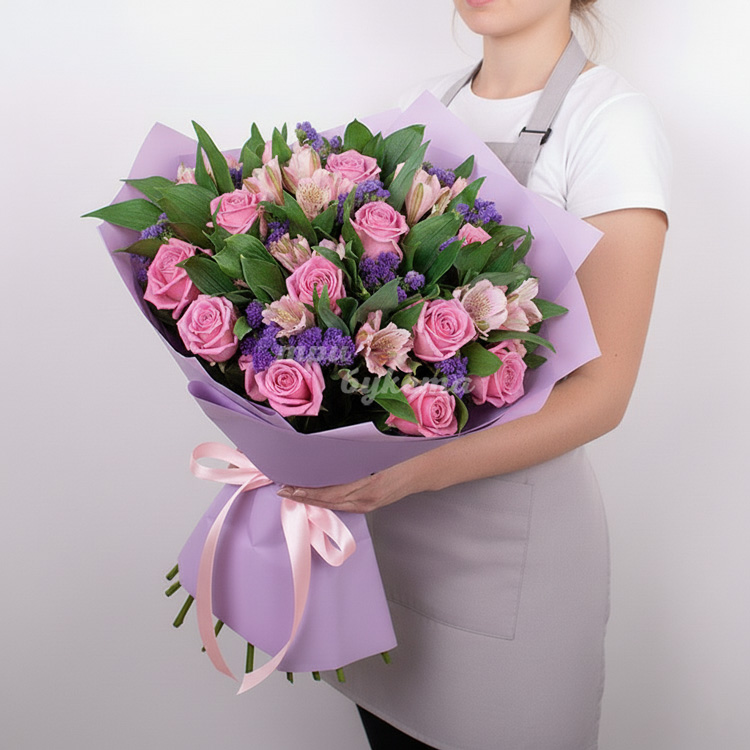 - Розовые розы, 19 шт.