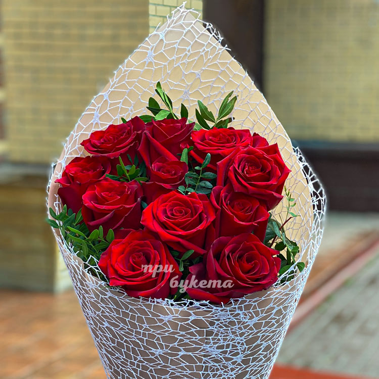 - Красные розы, 11 шт.