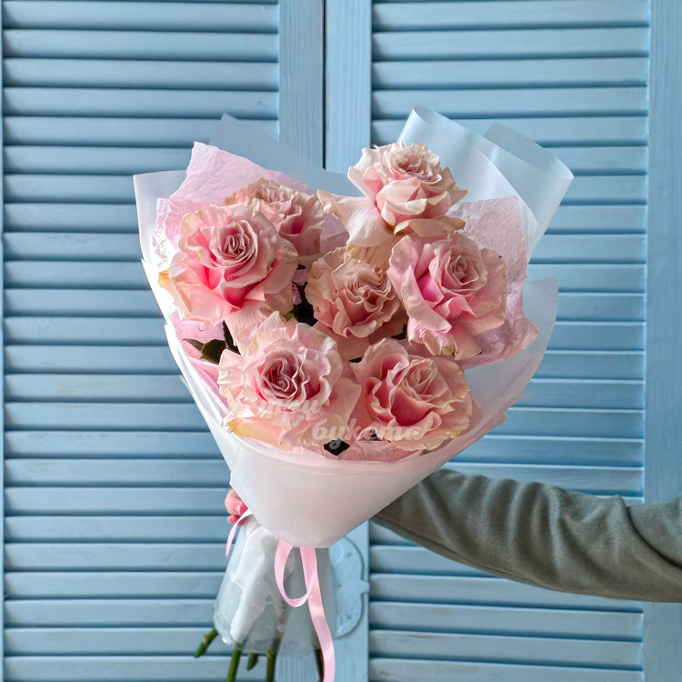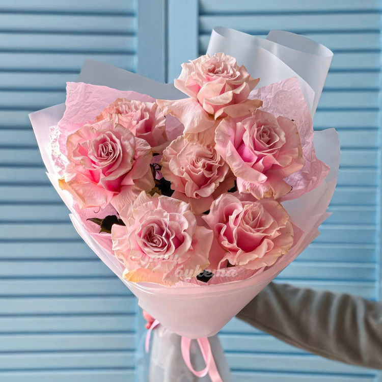 Букет из 7 французских роз Пинк Мондиаль
