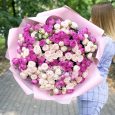 Букет из клубники и кустовых роз