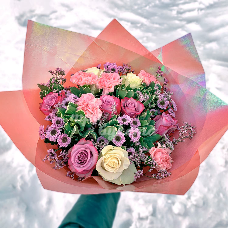 Букет из роз, гвоздик и хризантем