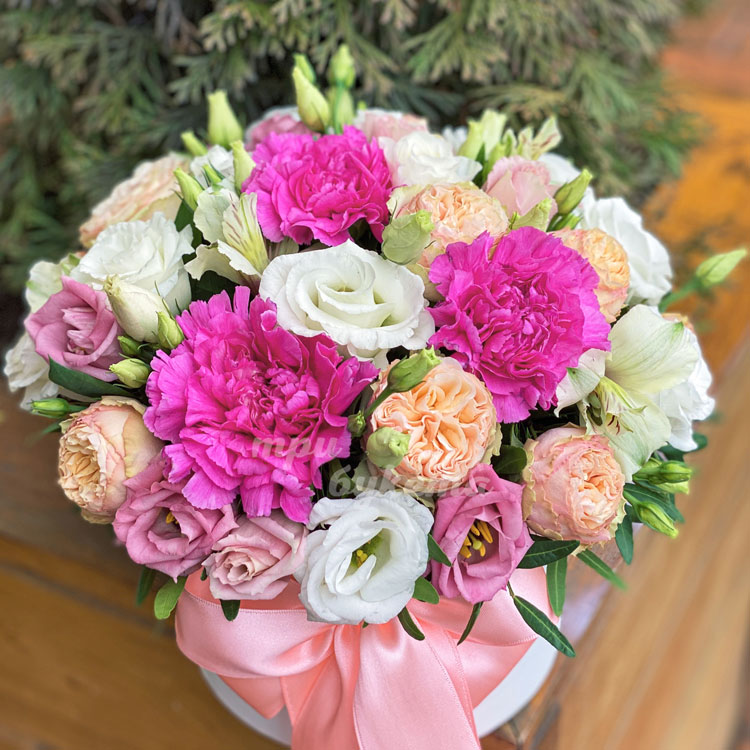 Гвоздики и розы в коробке