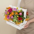 Композиция гербер и эстом в коробке
