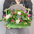 Корзина белых лилий и красных роз