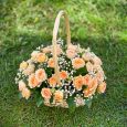 Корзина коралловых роз с гортензиями