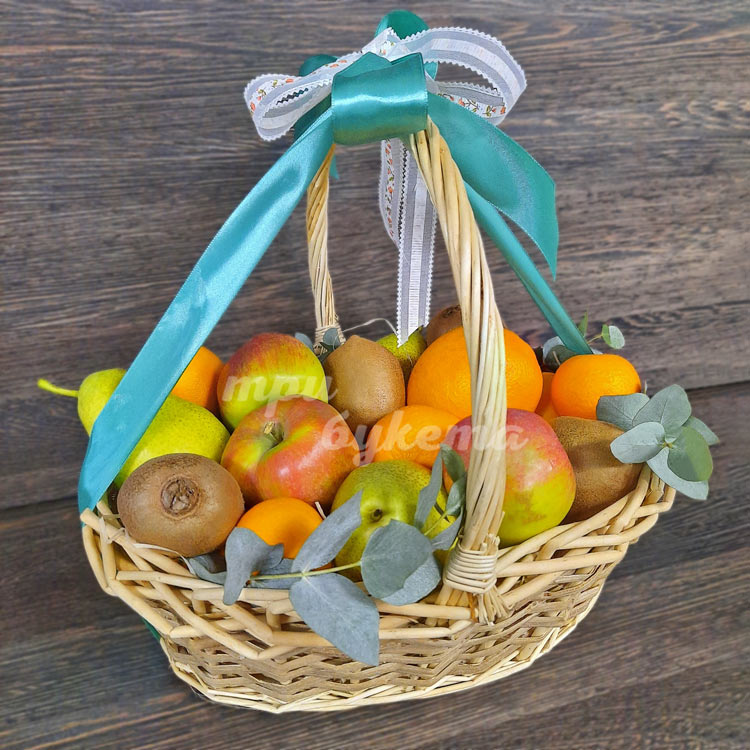 Корзина свежих фруктов с эвкалиптом