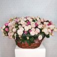 Красные розы, ранункулюсы и анемоны в коробке