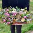Розовые розы и хризантемы в коробке