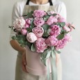 Розы и эустомы в ящичке
