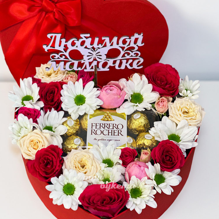Сердце из роз и хризантем для мамы