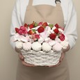 Шляпная коробка синих и розовых гортензий