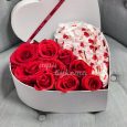 Ящик белых эустом и красных роз