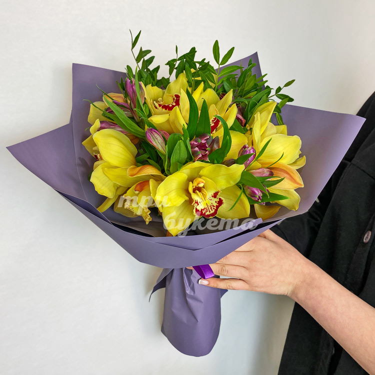 Желтые орхидеи с альстромериями